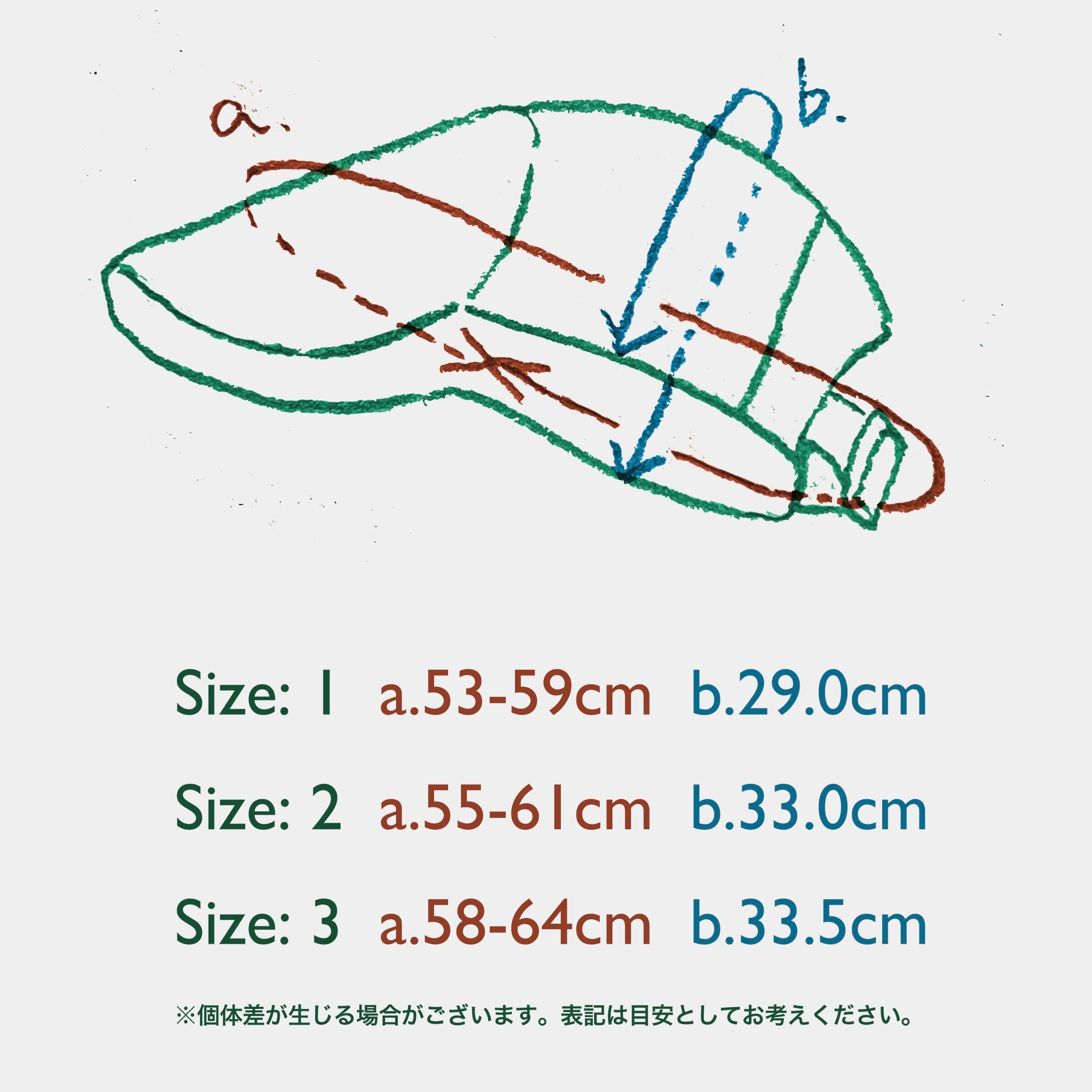 大きさは3サイズ展開。多くの男性もかぶれ深さのSize: 3が今年から新登場。男女問わず、かぶれる方が多いかと思います。Size: 1はお子様や頭の小さな方へ。ご不明点な点がございましたら、お問い合わせください。